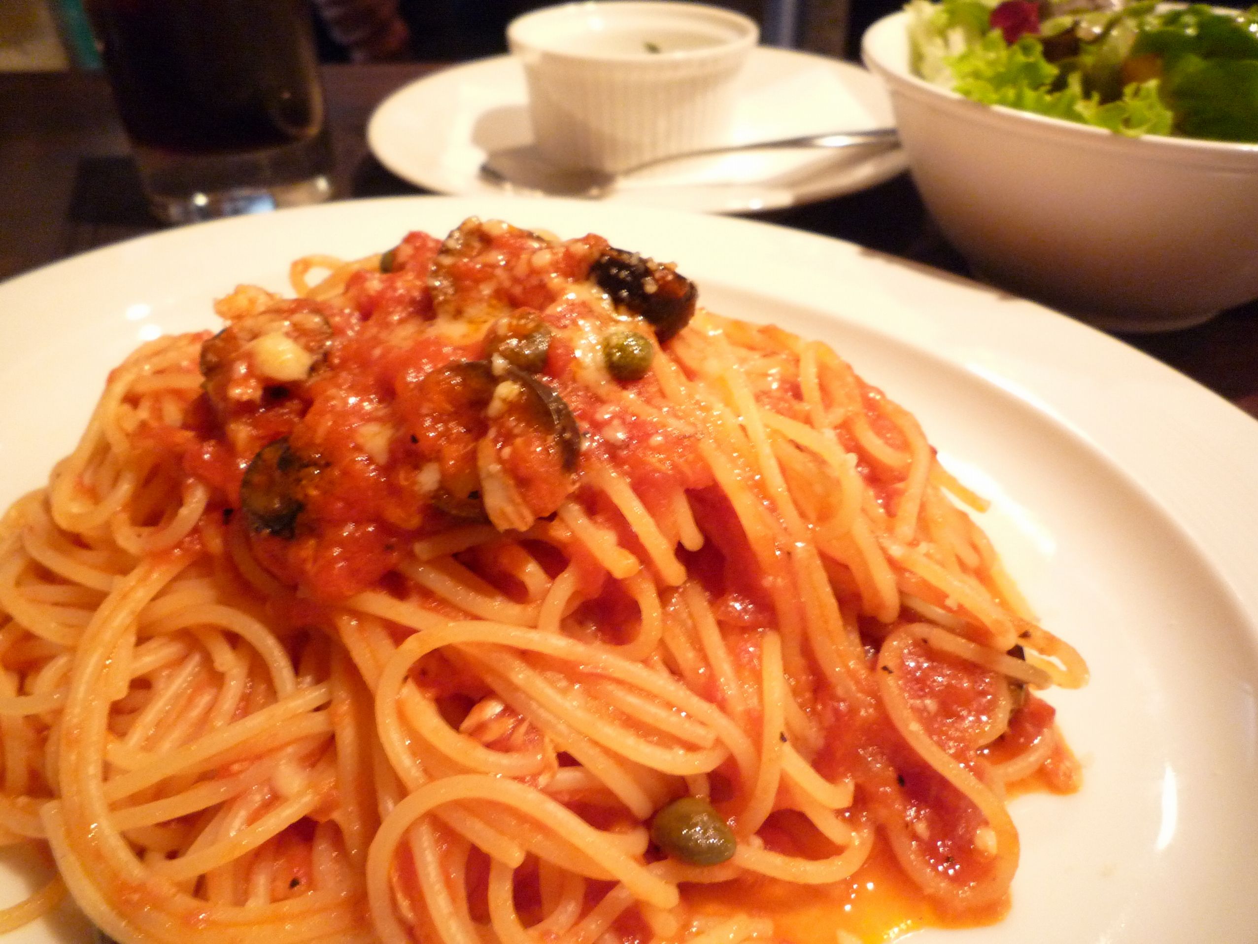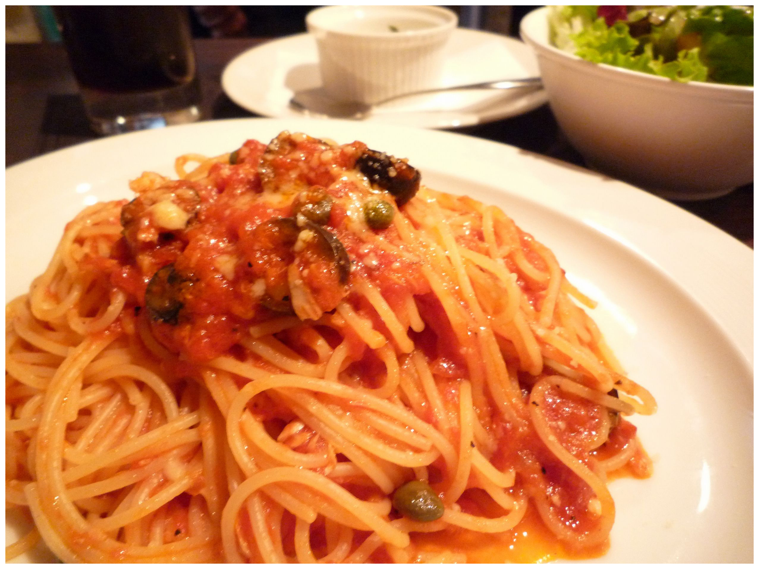 ●秋野菜と粗挽ソーセ-ジの和風ペペロンチーノ <カキフライはじめました!> 季節の味覚・カキフライはじめました。ランチタイムは大ぶりなカキフライが4コとライス・サラダ・ドリンク・デザートが付いて1,080円のセット価格(6コ1,280円)。夜はおつまみカキフライ4コで900円。ぜひご賞味くださいませ。 <テイクアウト実施中!(ランチ・ディナーとも)>ランチタイム時テイクアウトメニューは日替パスタ2種(各800円。大盛+100円)とオムライス(800円)のみ。(美味しさを保つためご注文いただいてから調理いたします)。