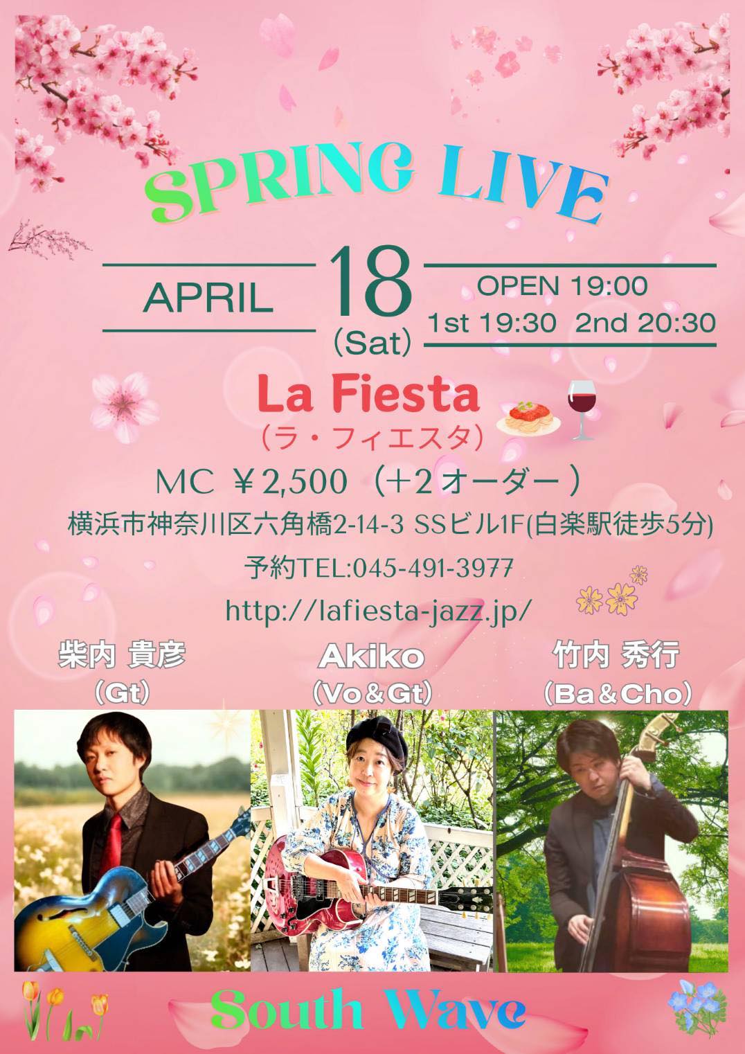 *4/1(水)よりランチ価格を改定させていただきます。何卒ご了承のほどお願い申し上げます。 きのうの栗田智香子ボーカルライブにお越しのみなさま、どうもありがとうございます!週末ライブが続きます♪ *きょう17日ディナータイムお休みいただきます。 4/18(土)ジャムセッション・・・ハウス:矢藤健一郎(ドラム)、中根一城(ギター)、吉川大介(ベース) OPEN 12:30 START 13:00 CHARGE 2,500円+2オーダー 4/18(土)SOUTH WAVE・・・出演:SOUTH WAVE(Akiko(ボーカル、ギター)、柴内貴彦(ギター)、竹内秀行(ベース、コーラス)) OPEN 19:00 START 19:30 CHARGE 2,500円+2オーダー
